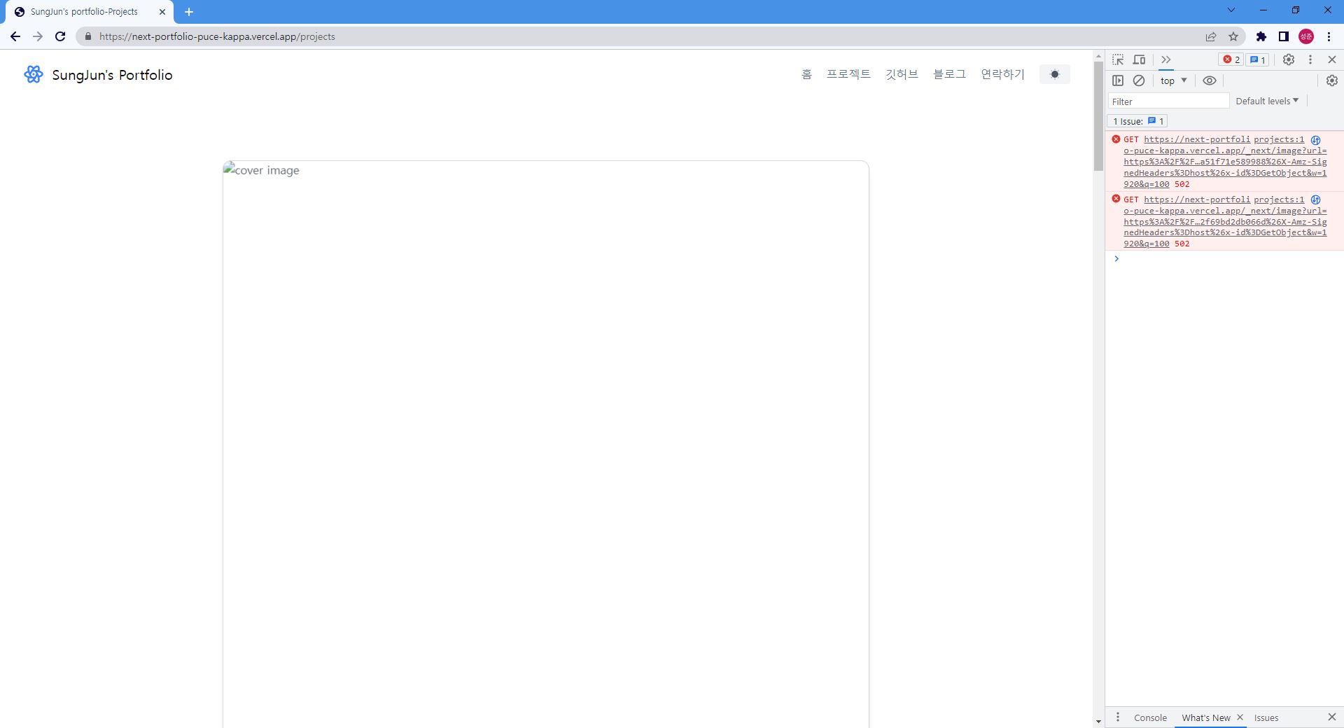 이력서 제출을 통한 좌절을 뒤로하고 포트폴리오로 제출한 Vercel 링크가 잘 작동되는지 수시로 확인을 하는데 이번에는 새로운 오류가 나타났다.