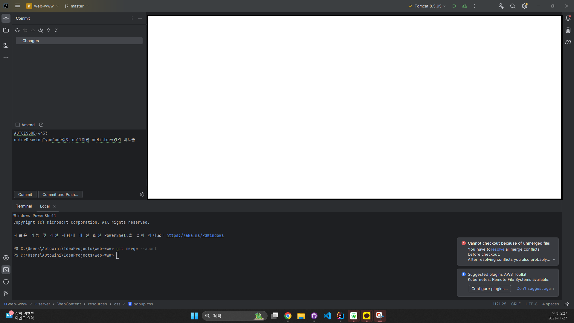 git merge를 했는데 충돌이 있어서 당황을 했는데 아래의 명령어를 통해서 마지막으로 한 merge 명령을 취소할 수 있었습니다.